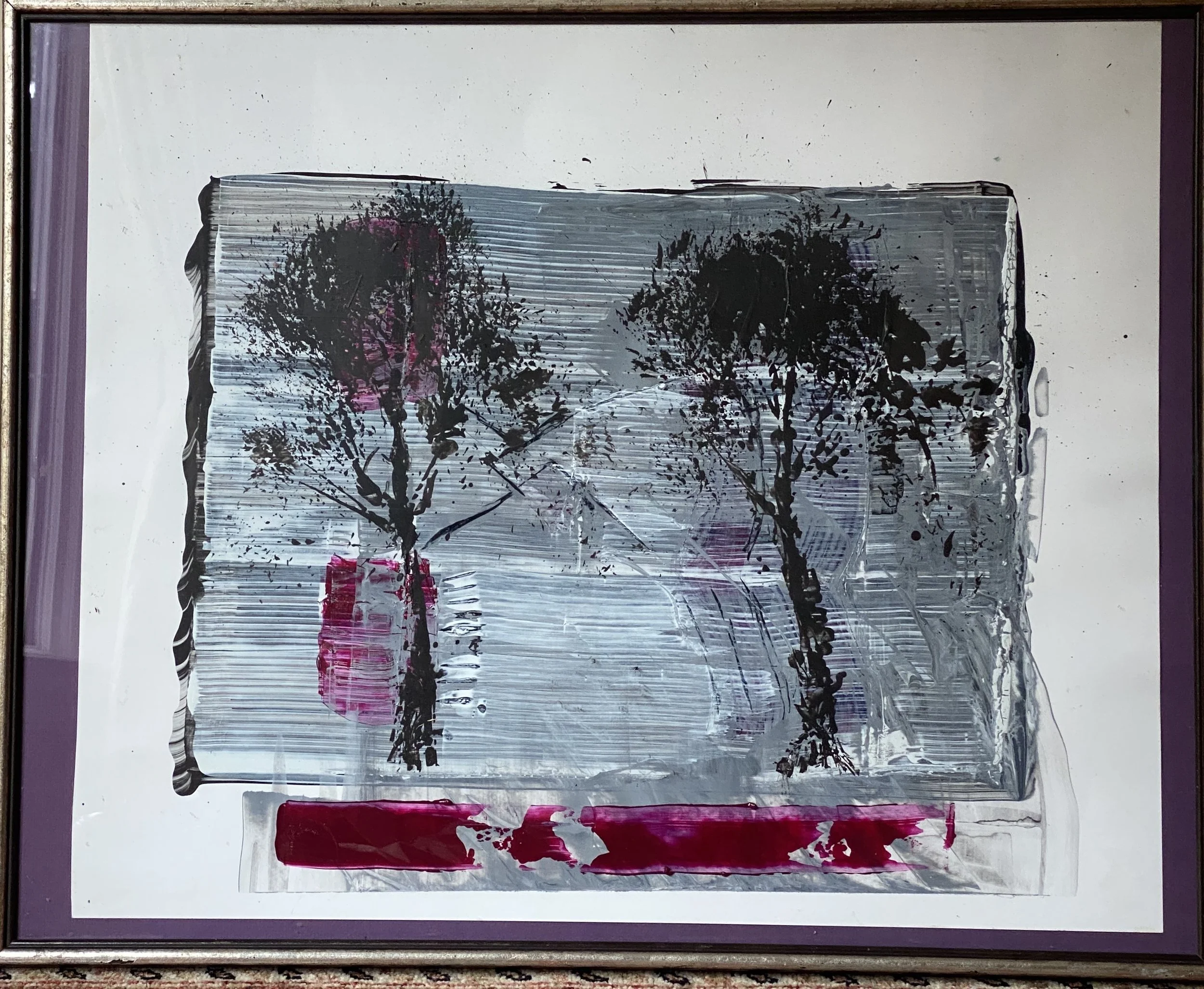 Two trees 30” by 24” acrylic on white board